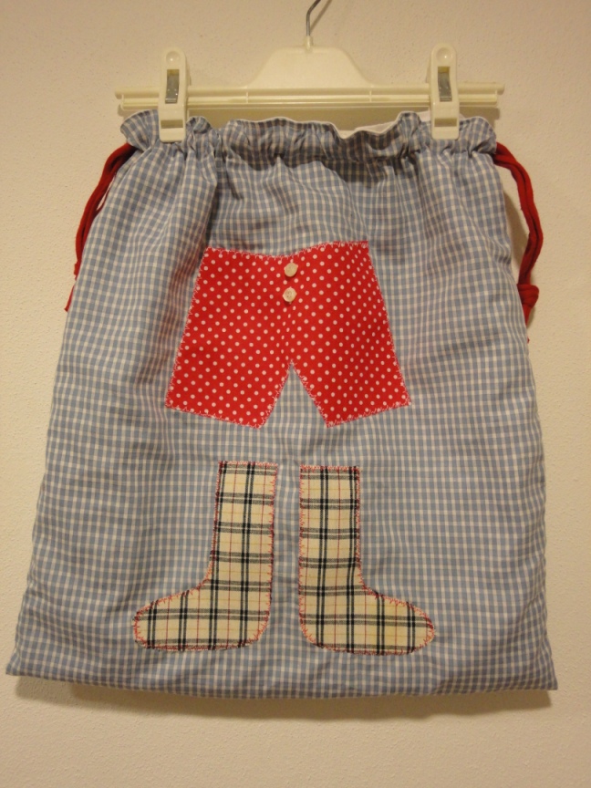 Ainda fiz 6 sacos para os mais pequenos guardarem as roupas