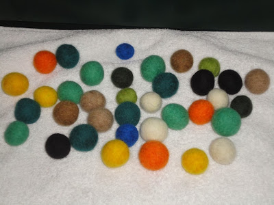 Estas bolas são feitas com lã, água e sabão com a técnica de water felting.